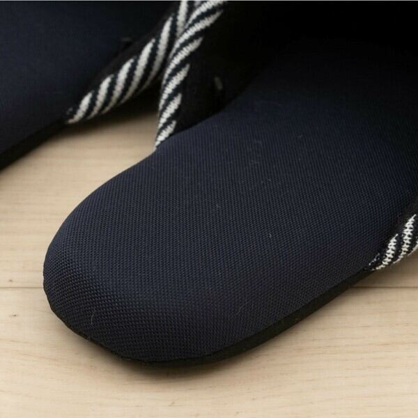 ニット編みで表現した細めのボーダーで足元をカジュアルに演出。