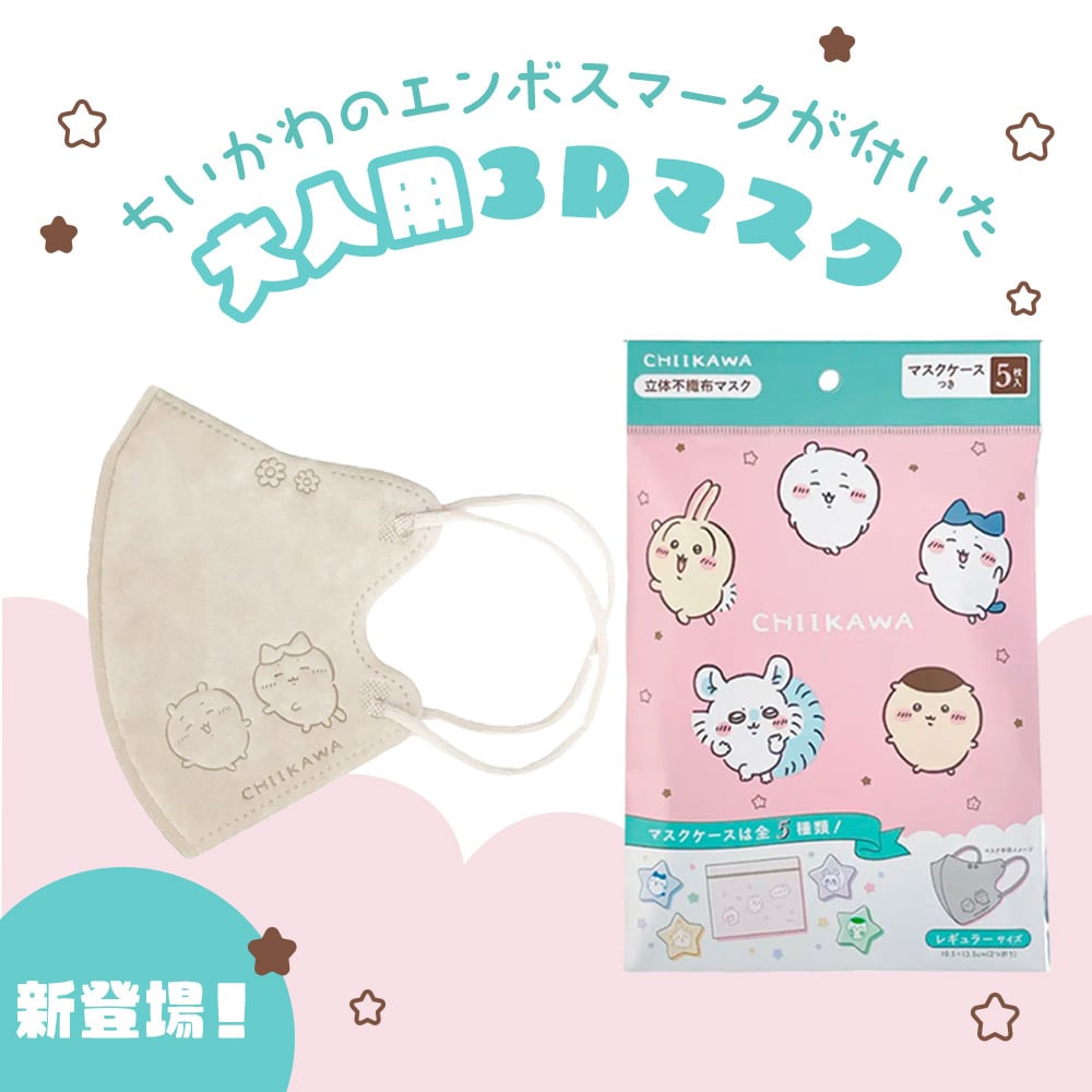 ちいかわ 3D不織布マスク(大人用)1袋(5枚入) キャラクター大好き【メール便可 6個まで】