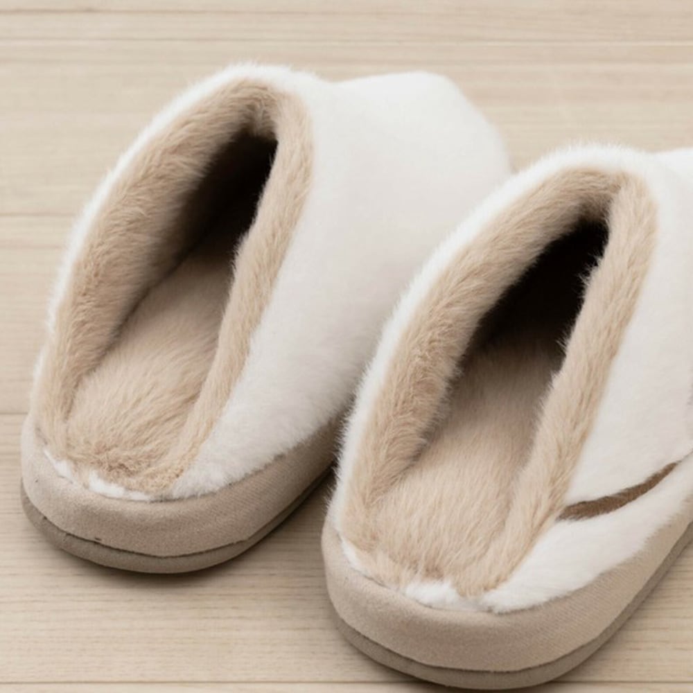 甲・甲裏・中板にあしらわらわれたファーが足をあたたかく包み込んでくれる、ナポレオンタイプのスリッパ。