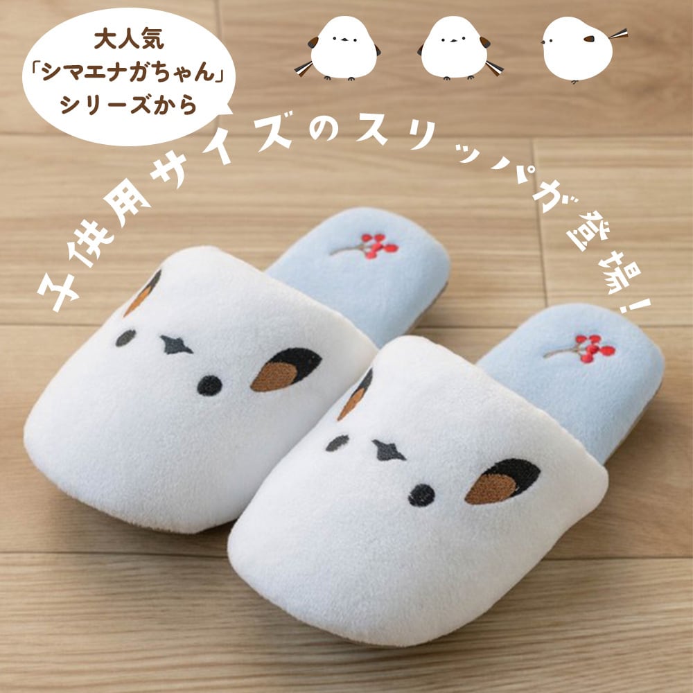 雪の妖精とも呼ばれるふわふわの小鳥をモチーフとした「シマエナガちゃん」シリーズから、子供用サイズのスリッパが登場!