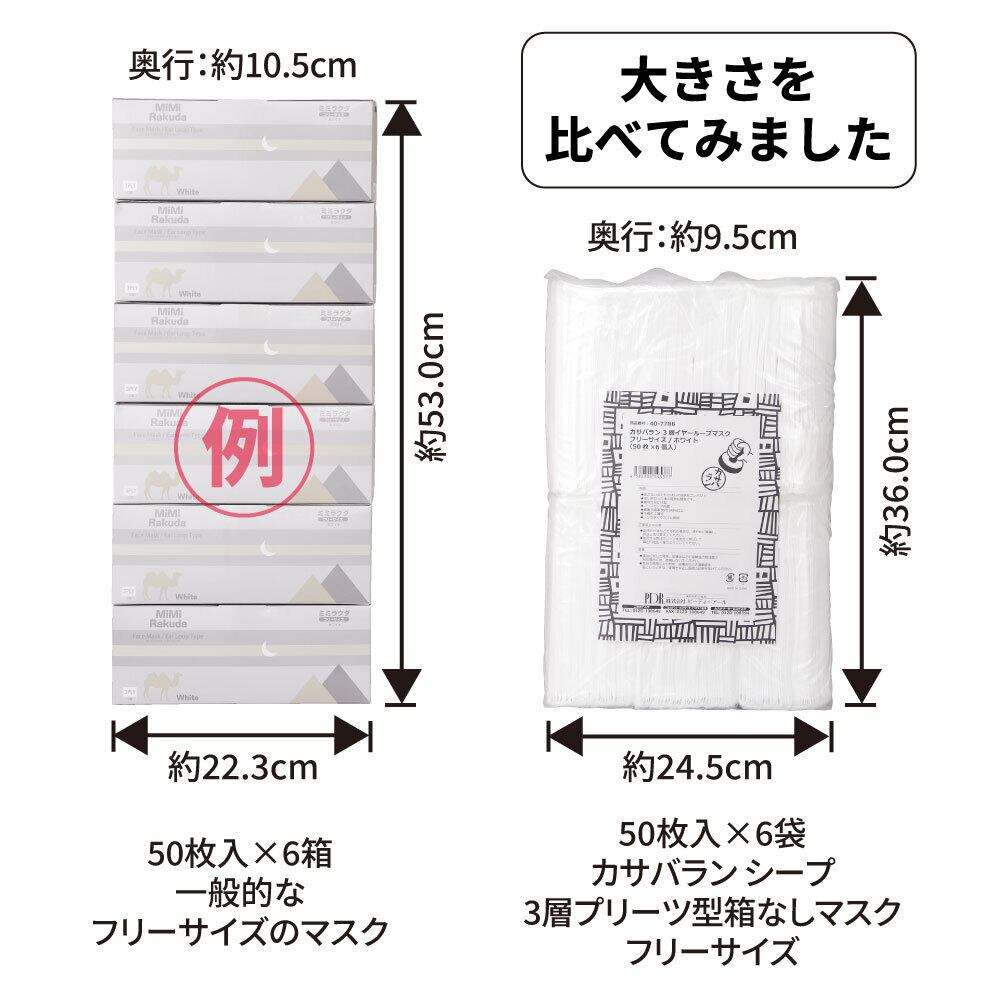 50枚入×6袋 カサバラン シープ 3層プリーツ型箱なしマスク フリーサイズ ホワイト