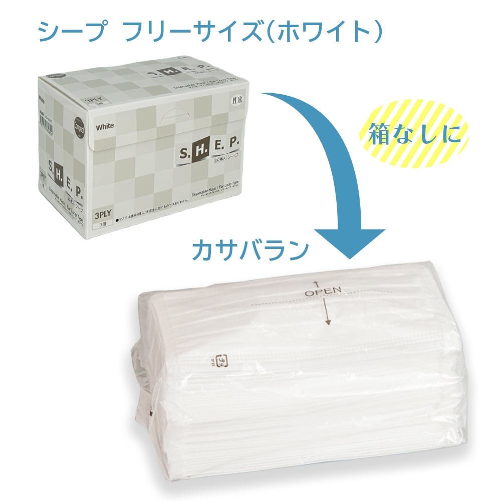 カサバラン シープ 3層プリーツ型箱なしマスク フリーサイズ ホワイト旧:シープから内容量・パッケージが変わりました。