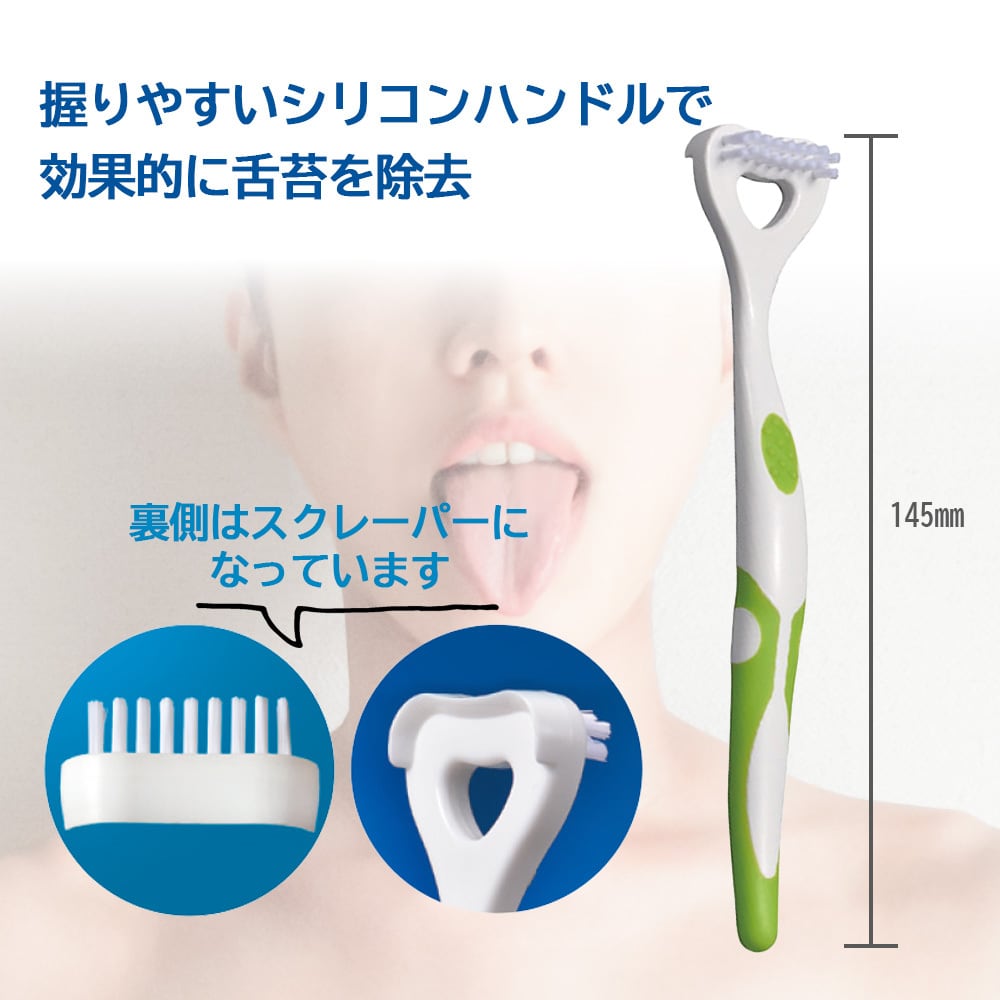 カラフルな4色のシリコンハンドルで効果的に舌苔を除去。