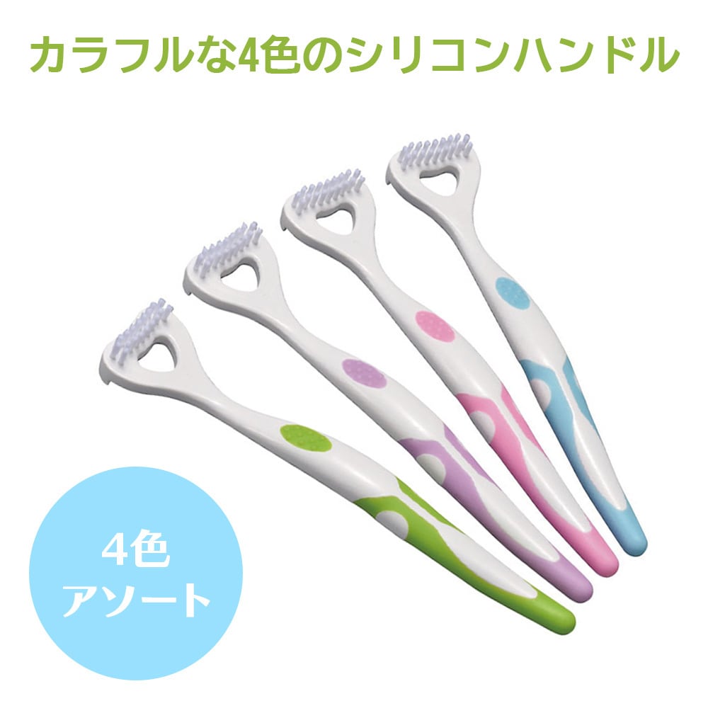 カラフルな4色のシリコンハンドルで効果的に舌苔を除去。