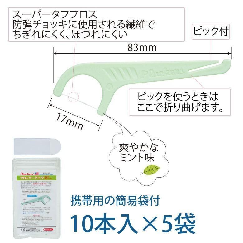 ハンドル付きフロス フロッサーピック ミントフレーバー 10本入×5袋 メール便可 1セットまで