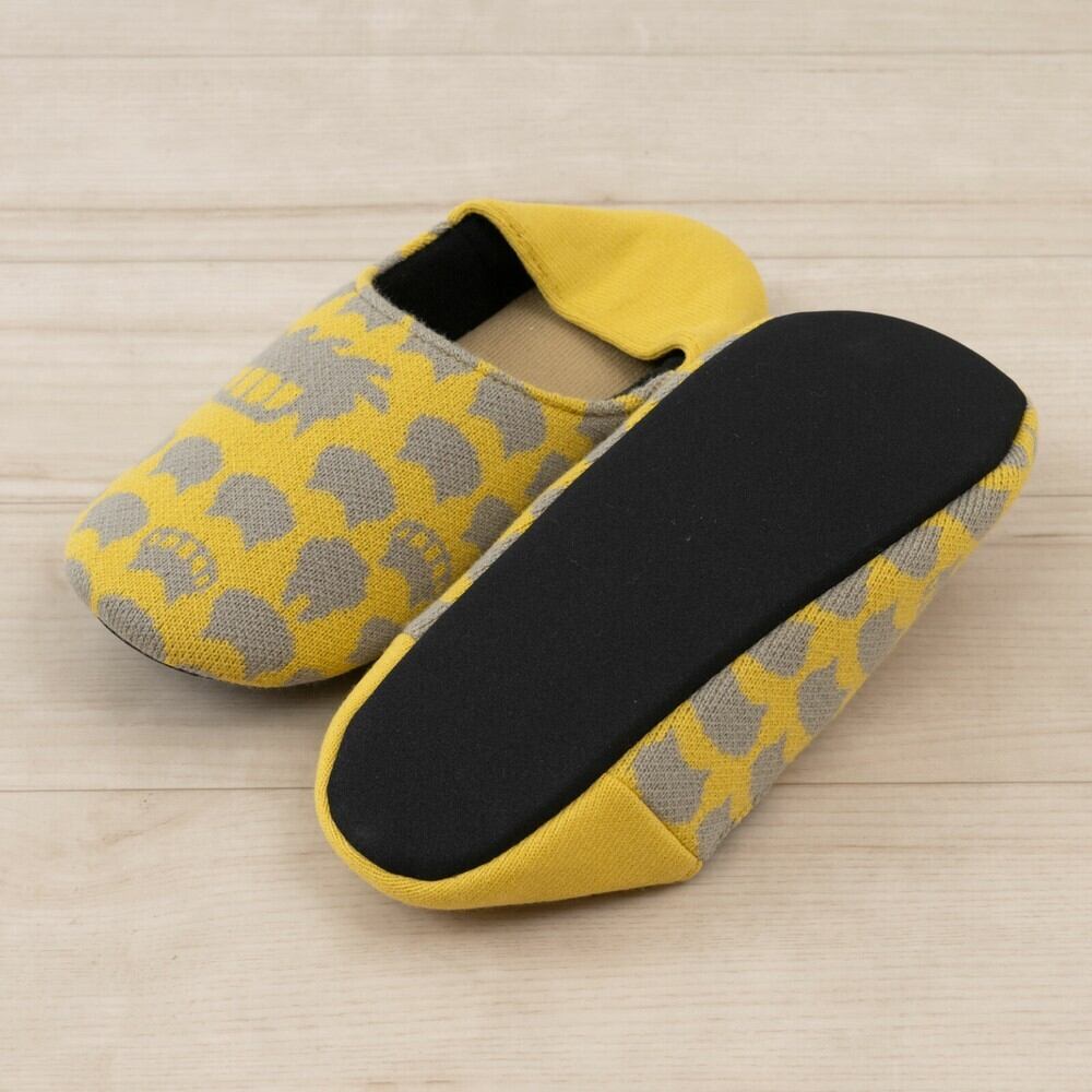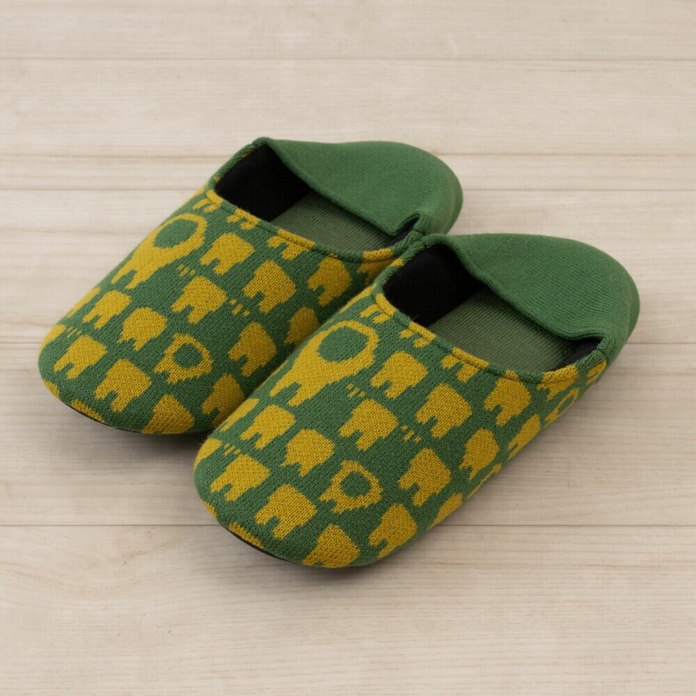 キャラクターのシルエットが可愛い、ニット生地のバブーシュスリッパです。